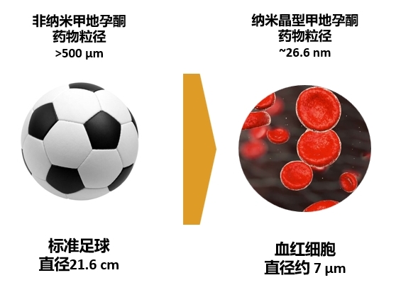 而此次纳入医保的新型第三代醋酸甲地孕酮口服混悬液,采用纳米晶技术将药物颗粒缩小2万倍(相当于从足球大小缩减至红细胞大小),大幅提升了药物吸收效率,进一步强化了治疗效果。