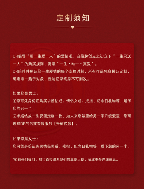 爱情世界里,从来没有规定好的主动方与被动方,唯有主动拥抱幸福的勇敢者。而DR“帮更多人表达真爱,让爱情幸福长久”的使命,恰恰是对这份勇气最深刻的呼应和守护,这也是DR能脱颖而出的原因:从不拘泥于世俗框架,一切发乎本心,一切归于真爱。