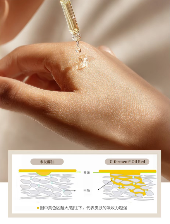 Terrake天芮通过U-ferment Oil Series微生物发酵科技将脂类成分与天然植物油深度融合发酵,让油脂分子变得更为微小细腻,质地轻薄如呼吸般无负担,既能快速渗透肌底传递营养,又不会在表层残留黏腻感。无水配方设计,既避免了水分稀释有效成分,又能凭借发酵油脂的原生锁水力,实现长效锁水,彻底打破“油养肤只适合干皮”的刻板认知,让干性、油性、混合性及敏感肌都能适配,真正实现全肤质友好的“油养”体验。