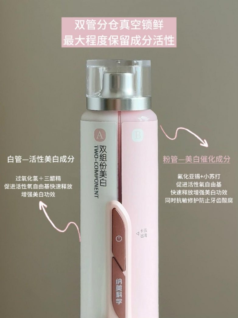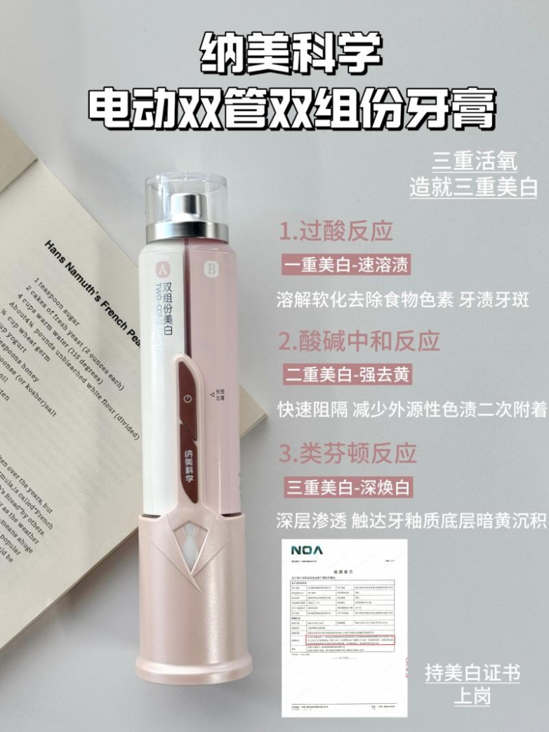 春色如许,最美的风景在人间,最动人的光彩在自信舒展的笑容里。纳美科学电动双管双组份美白牙膏以“分仓锁鲜”的智慧保存活性,以“三重活氧”的科技温和焕白,以“零刺激”的体验守护敏感,助你在这个焕新与开始的季节,收获每一个闪亮自信的瞬间。