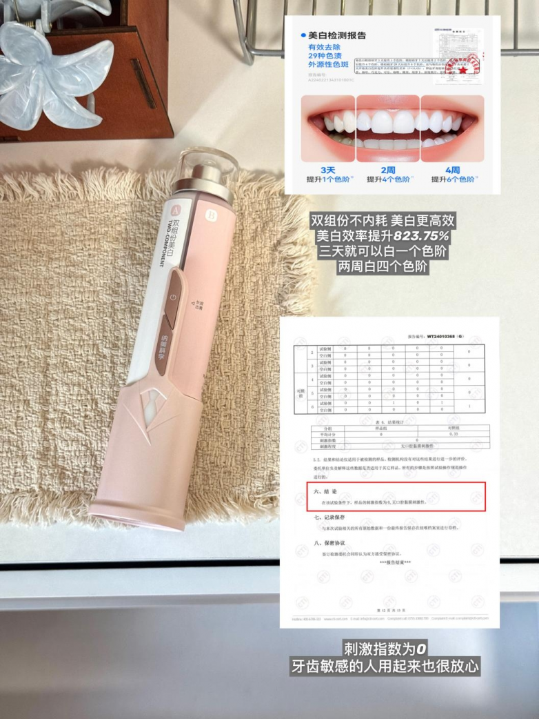 温和,是敏感的可靠承诺。对于易敏的口腔,安全性是效能的基石。该产品经口腔黏膜刺激性试验,刺激指数为0。即便是牙龈敏感人群,也能安心体验这份专业级的美白呵护。